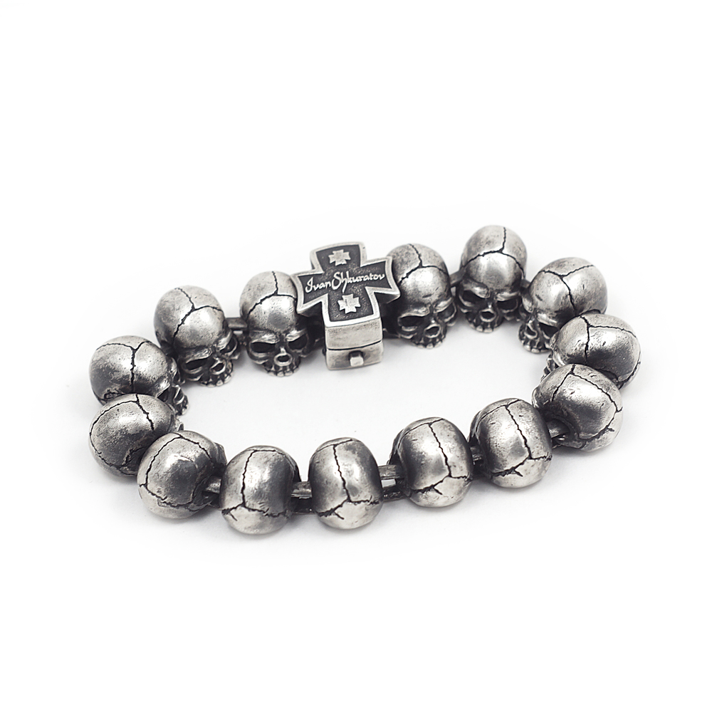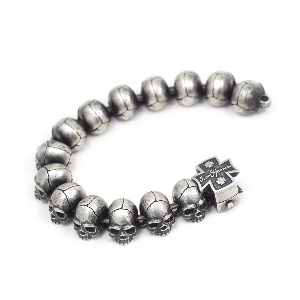 Браслет серебряный Черепа, чернение. Возможно изготовление другого размера.