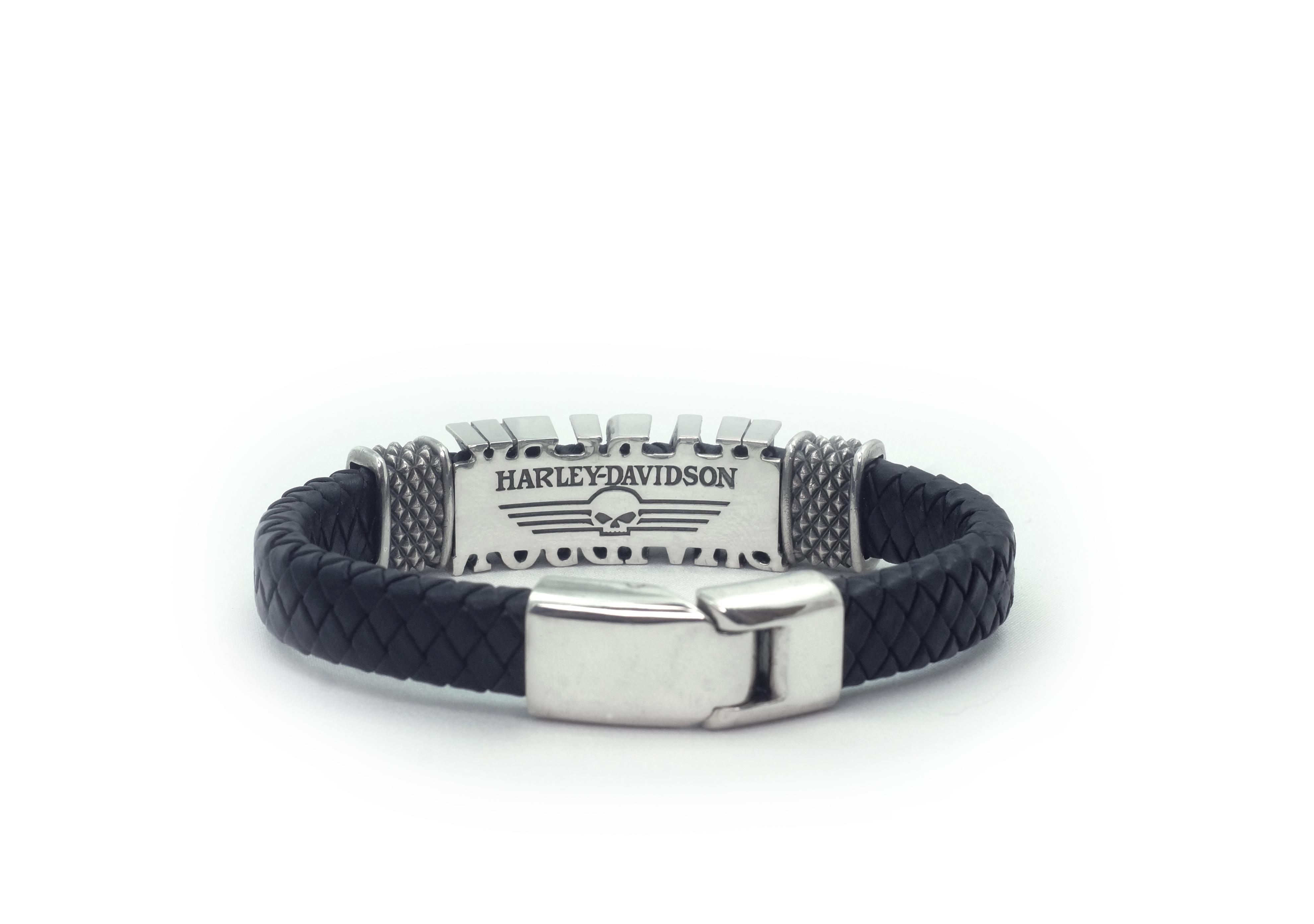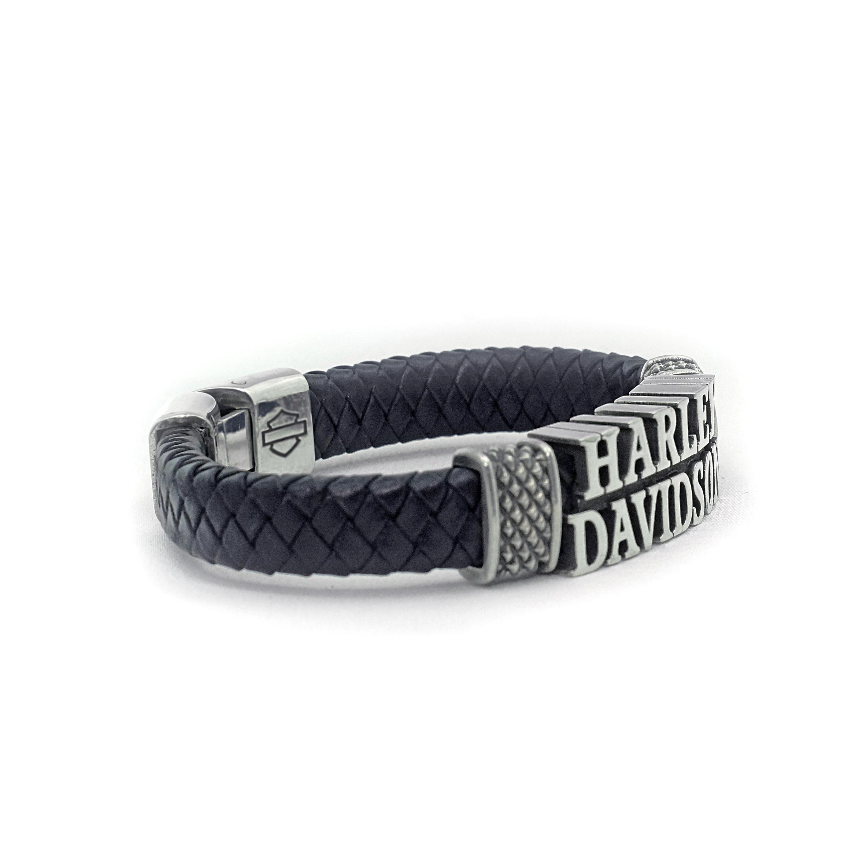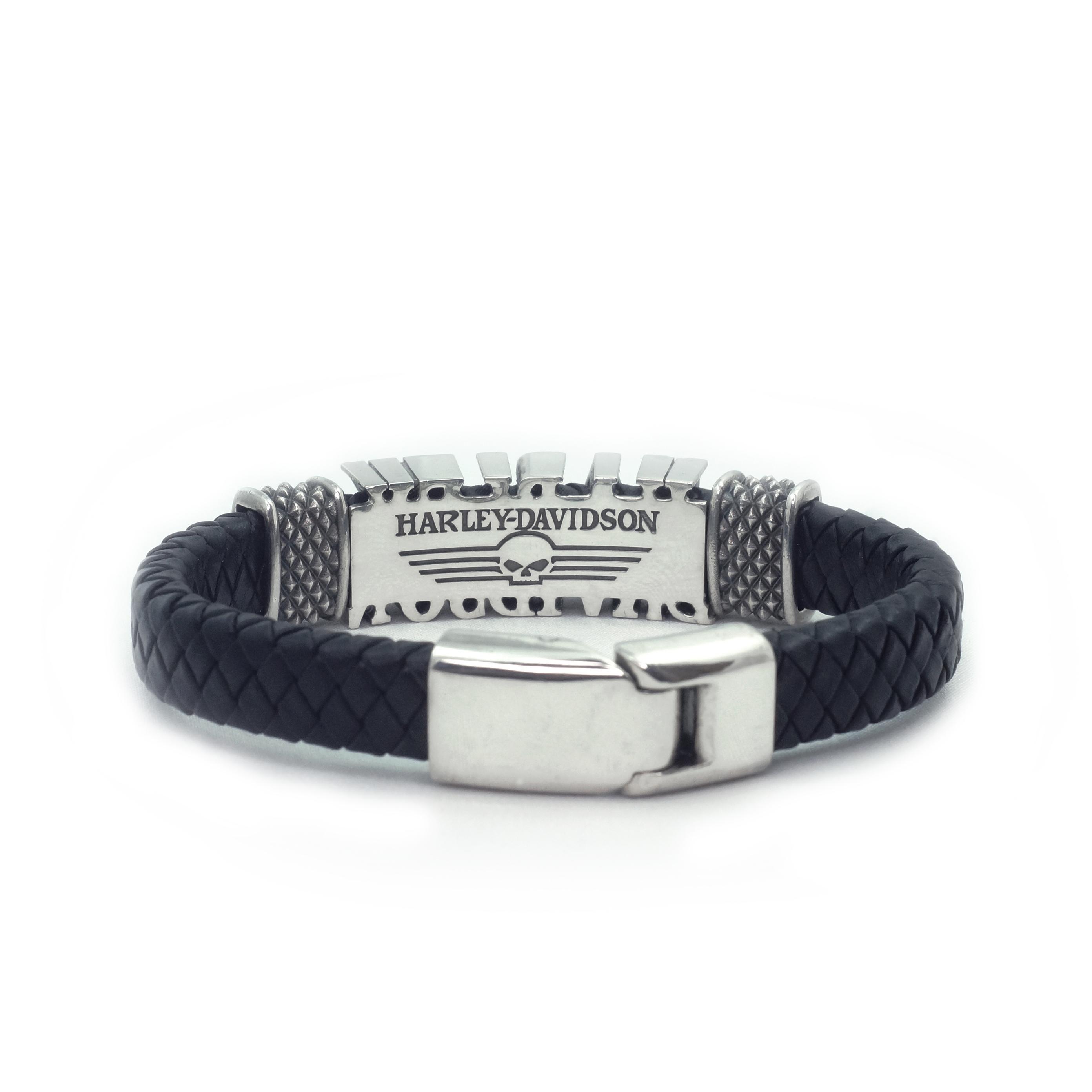 Браслет серебряный Harley-Davidson, чернение, плетёный кожаный шнур 12x6мм. Такой браслет можно купить только здесь.