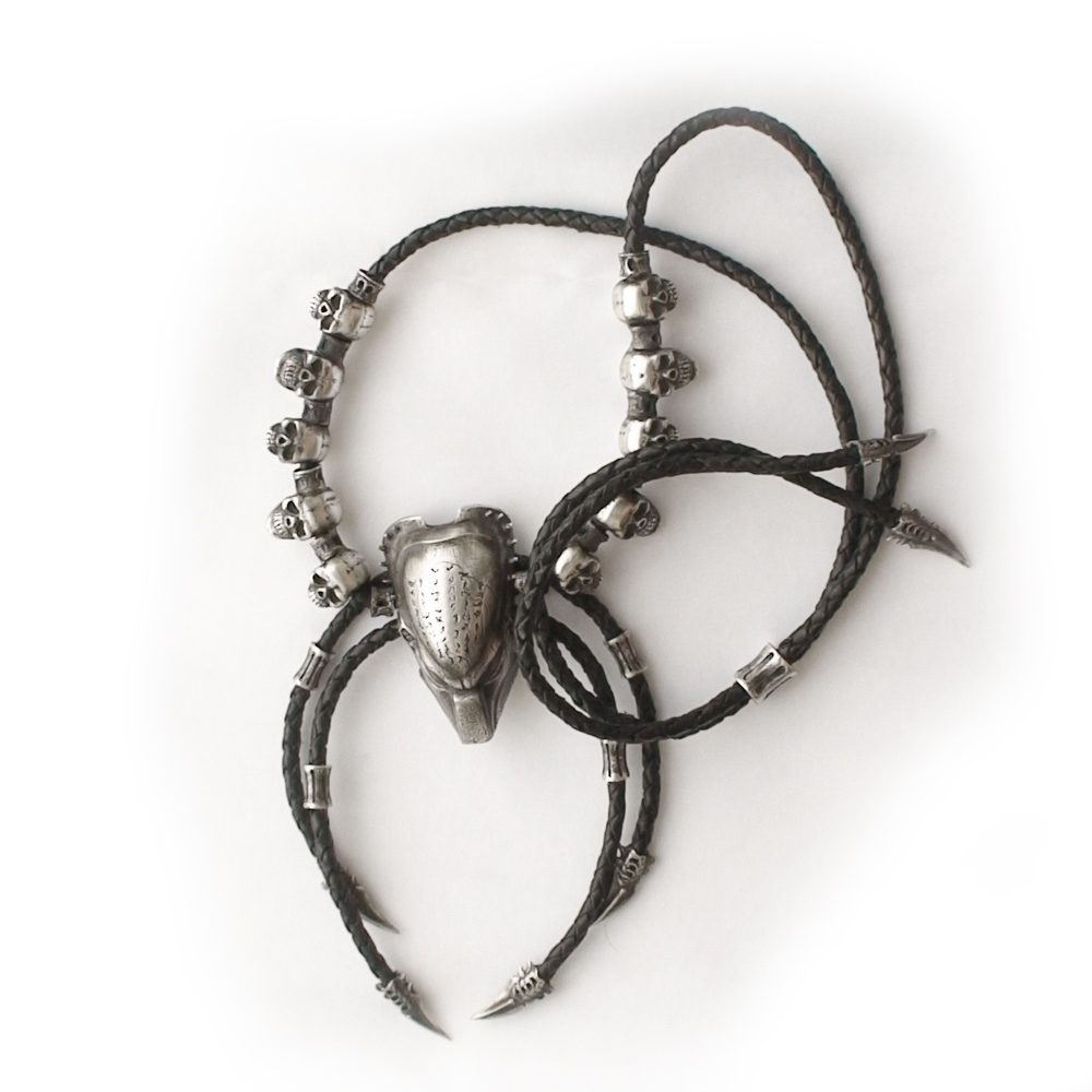 Колье серебряное Хищник, чернение на кожаном шнурке. Купить можно только у меня.