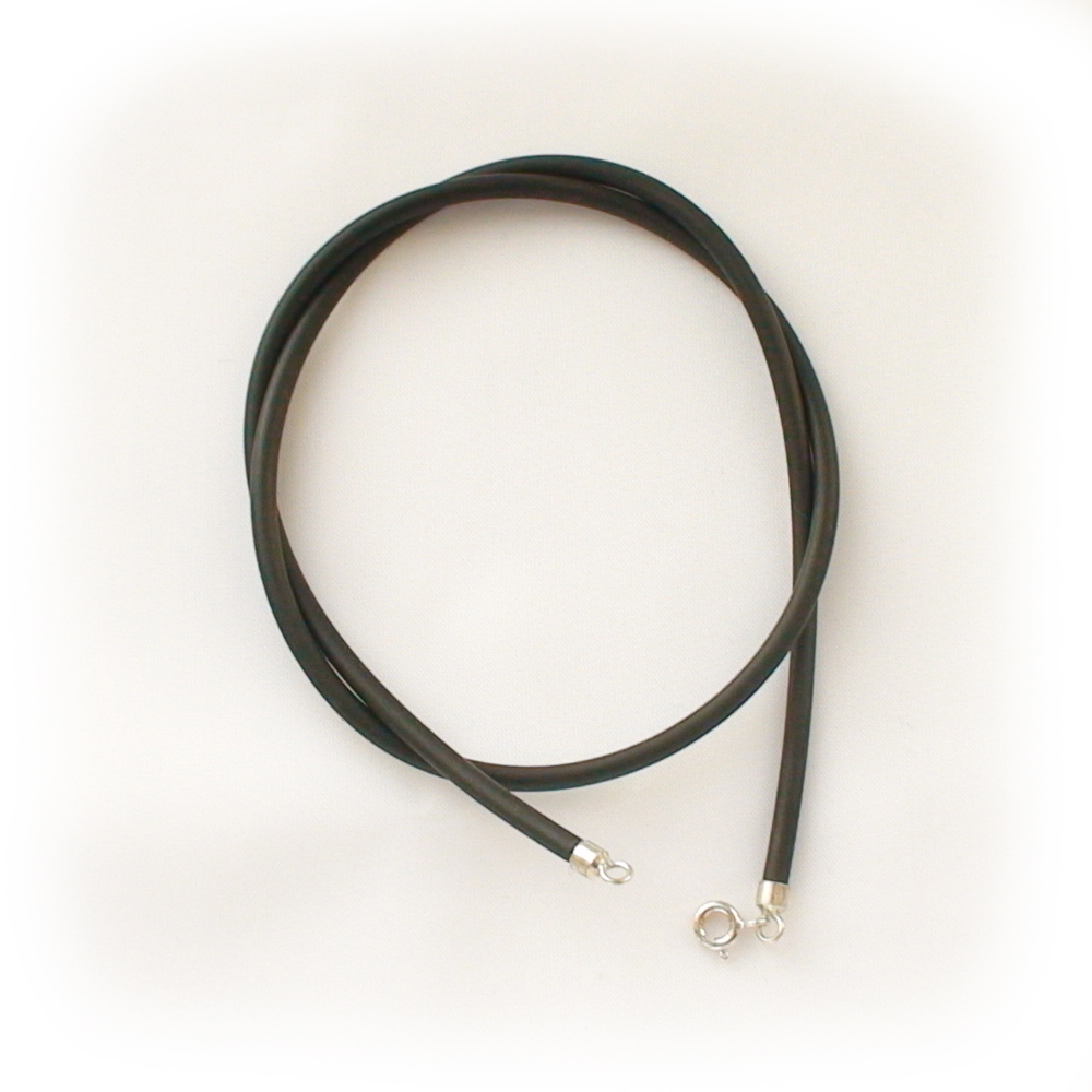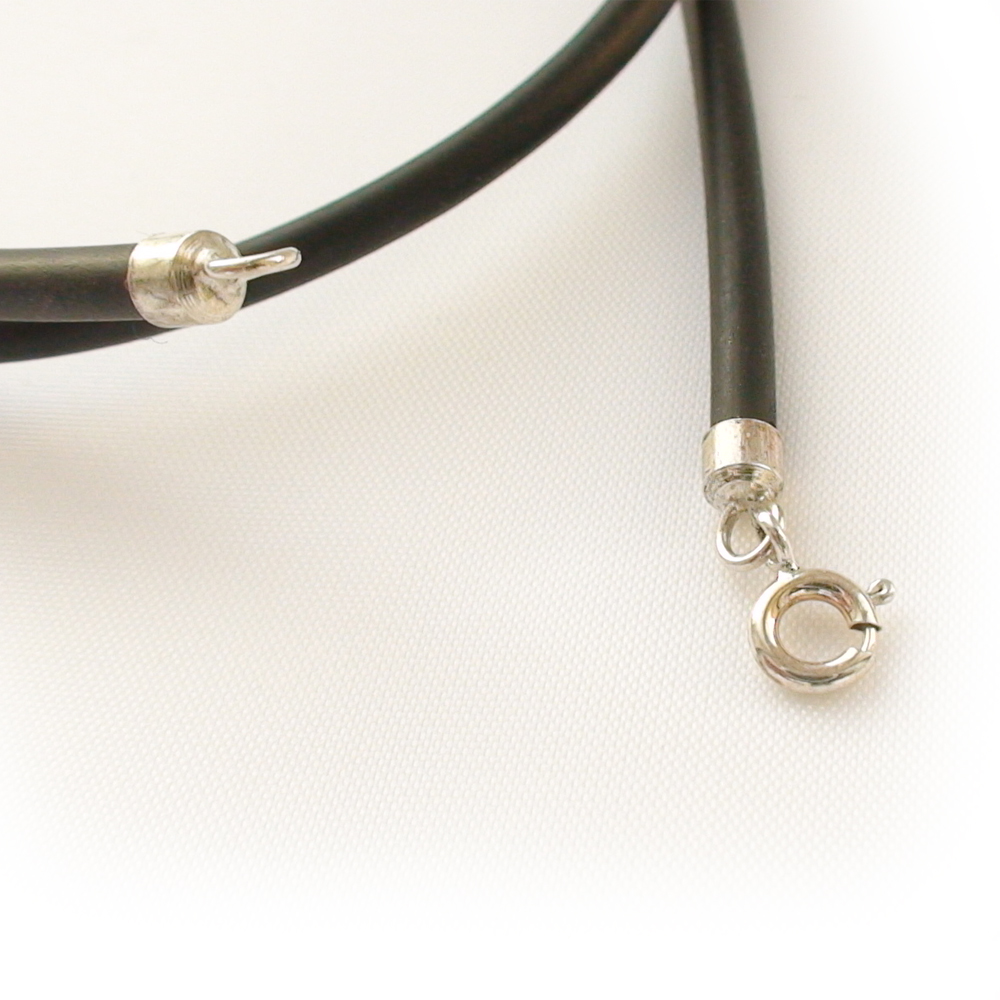 Шнурок каучук. с серебряными концевиками и замком. Диаметр 3мм.