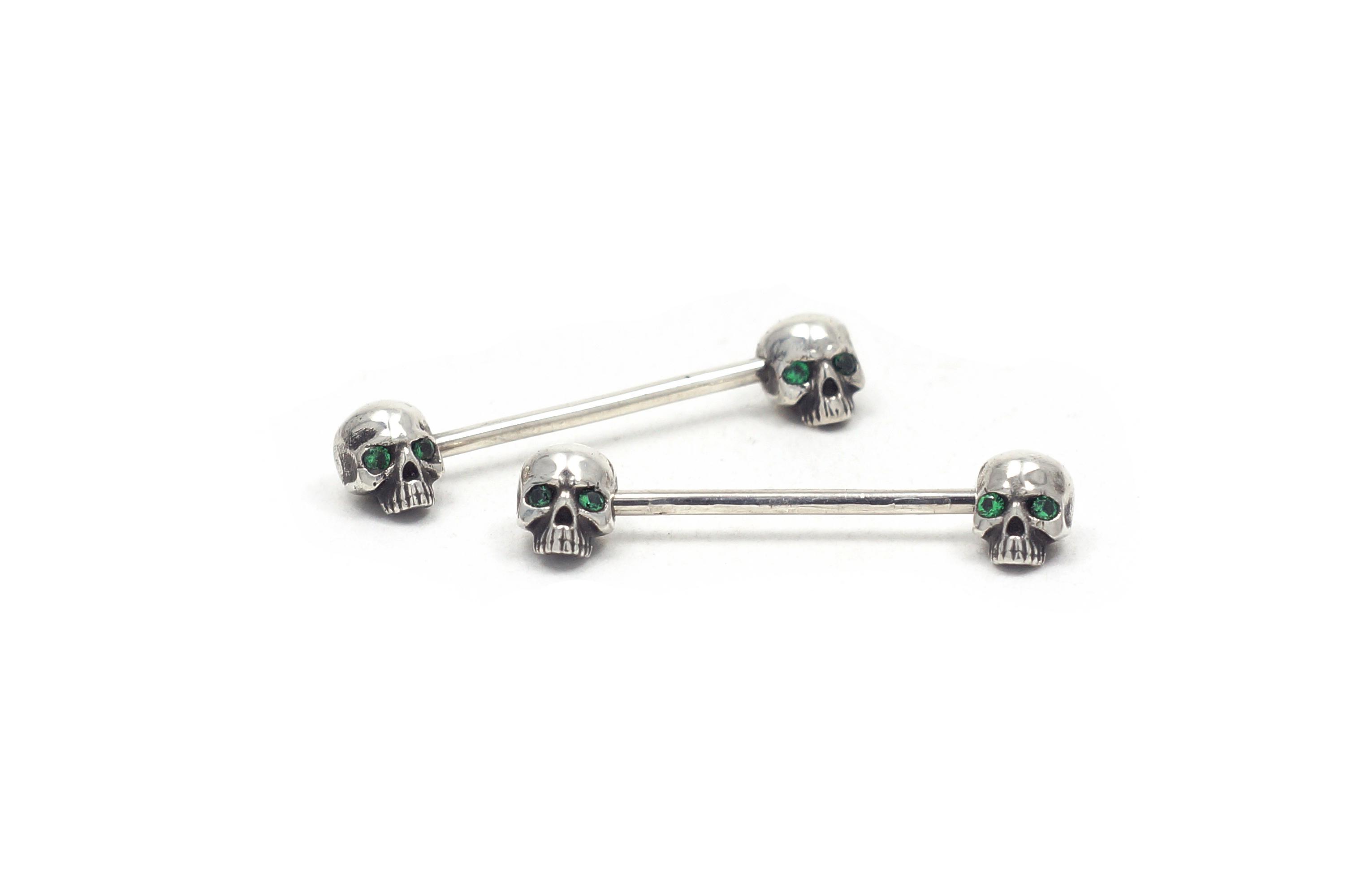 Пирсин серебряный черепа с фианитами, чернение. Цена указана за 1шт.
