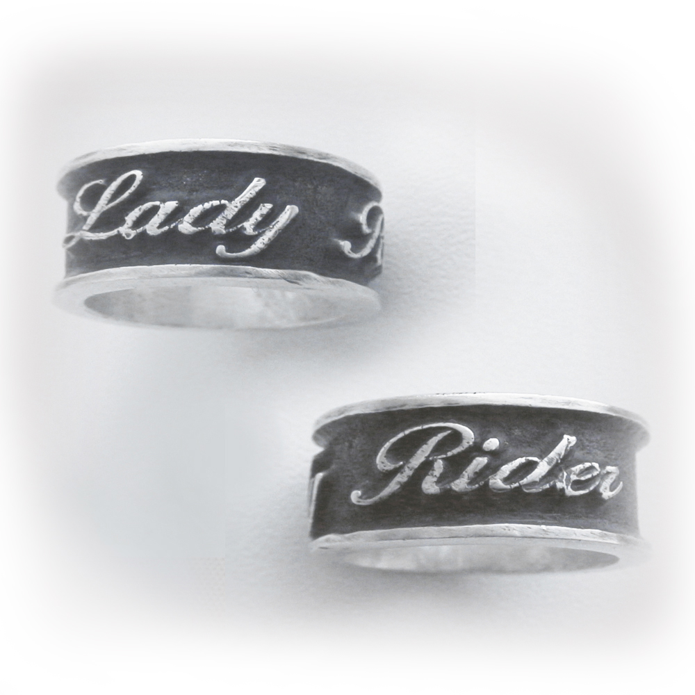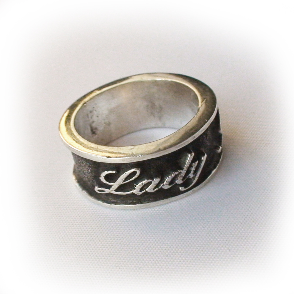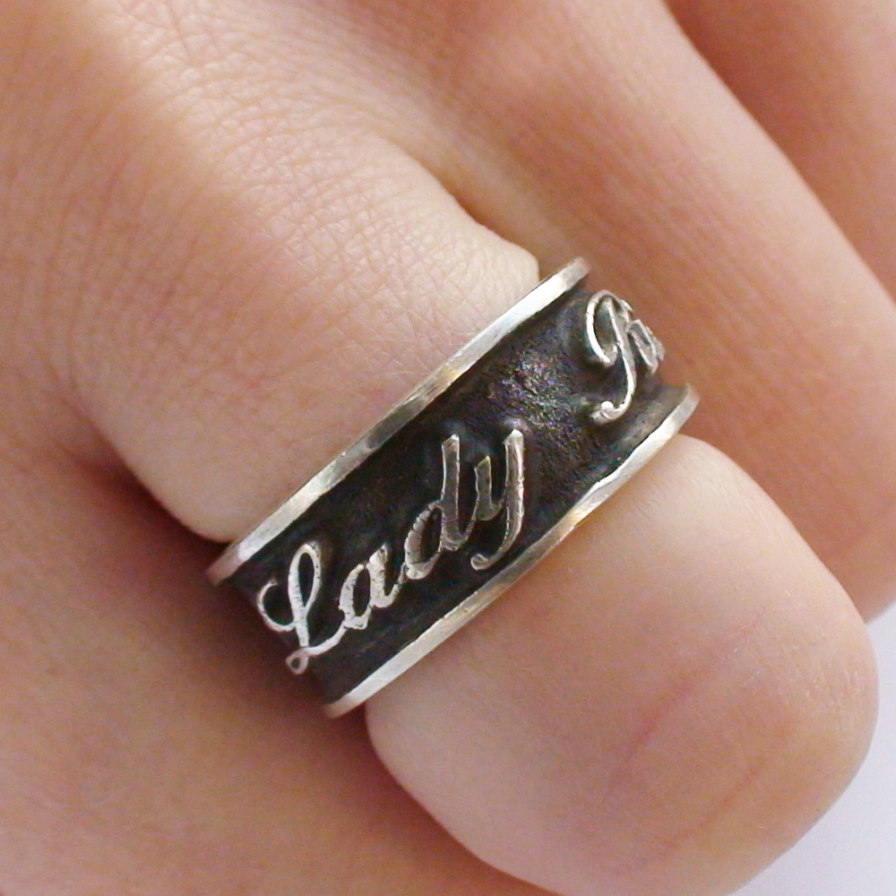 Кольцо серебряное,чернение. Надпись на кольце "Lady Rider"