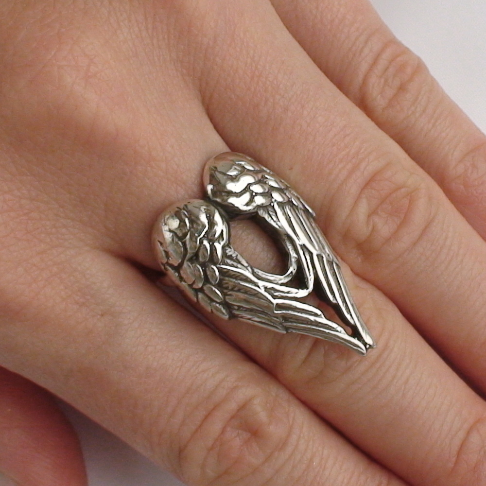 Кольцо серебряное крылья ангела, чернение.