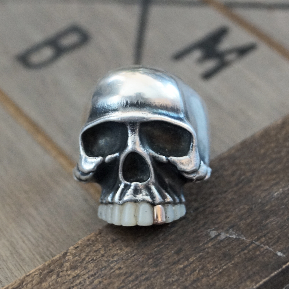 Кольцо серебряное "череп, зуб золотой 585 пр", чернение. Такое кольцо можно купить только здесь.